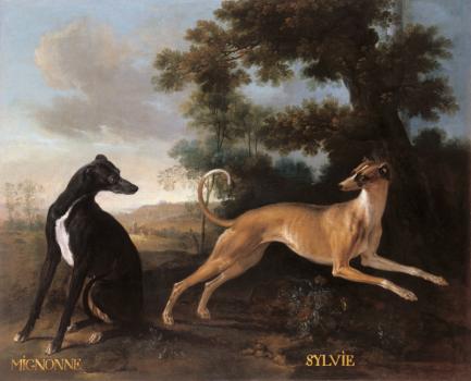 Mignonne and Sylvie, dogs from the pack of Louis XV oudry