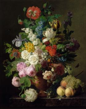 Vase of Flowers, Grapes and Peaches