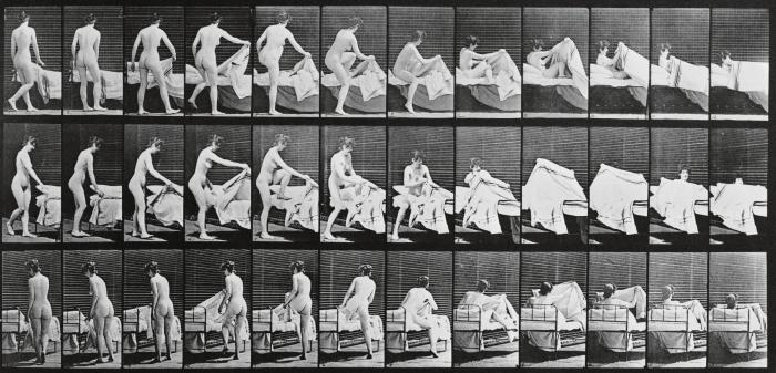 Animal Locomotion: Nude woman getting into bed