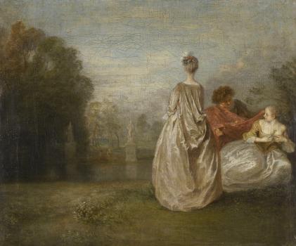 Jardins publics: les nourrices, la conversation; l'ombrelle rouge. La conversation (centre)
