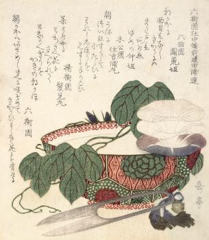 Modèle de décor pour la faïence : cigale volant au milieu de prenanthes