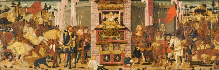 Panneau de cassone : Hersilie réconciliant les Romains et les Sabins