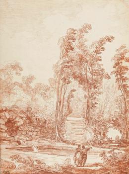 Vue du parc, parterre d'eau, bassin nord, margelle ouest : la Marne