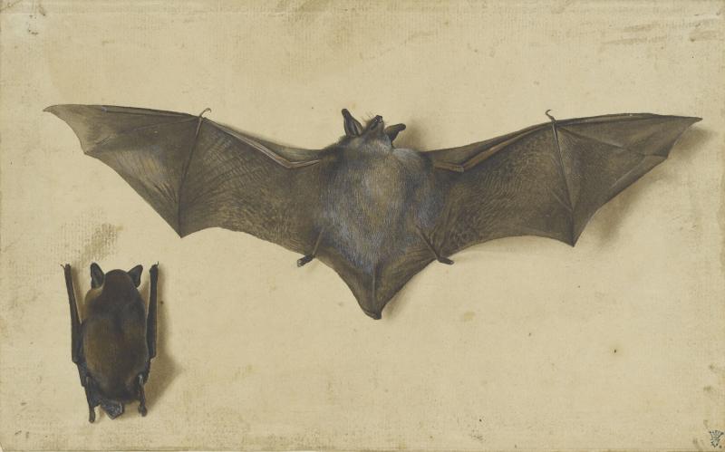 Une chauve-souris les ailes déployées, une autre les ailes repliées