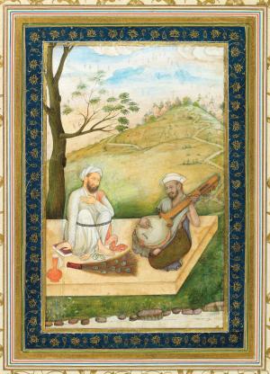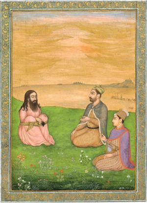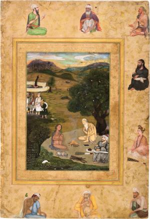 Les empereurs Akbar et Jahangir en compagnie de soufis et de yogis