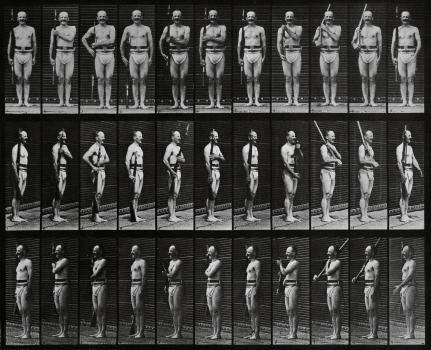 Animal Locomotion: Man In Pelvis Cloth Positioning Bayonet