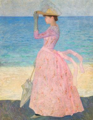 Essai de figure en plein air : femme à l’ombrelle tournée vers la gauche