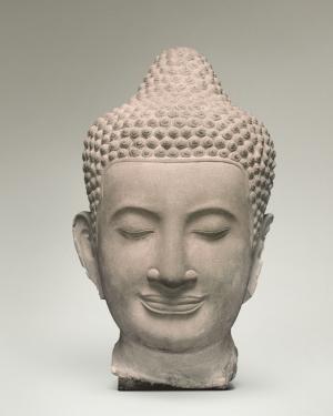 Canthare-vase plastique en forme de tête de femme à figures rouges