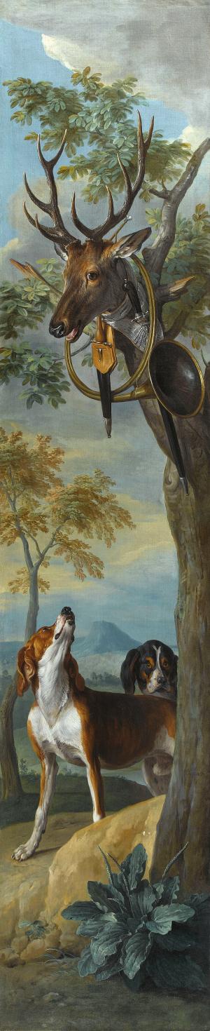 Tête de cerf bizarre sur un mur de pierre, signé et daté en bas à droite